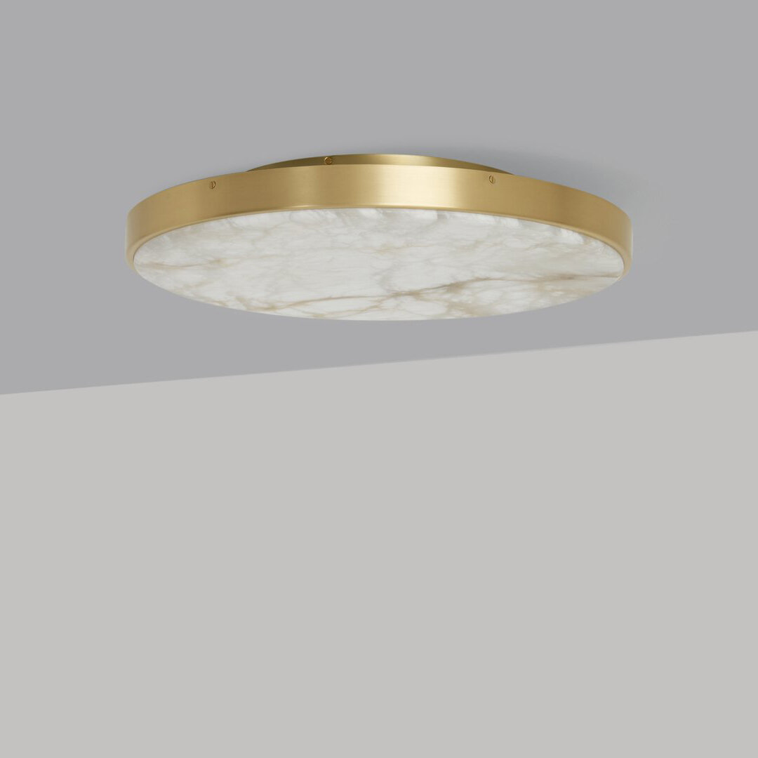 Inspired by the linear plains of the Flemish landscape, the ANVERS collection embodies the low-lying profile of the terrain with its refined silhouette, whilst creating maximum impact through its exquisite disc of natural alabaster stone. The translucent disc of honed alabaster is encased within solid brass, creating a pure and elegant piece. The natural striations within the alabaster, produce an individual and distinctive feature.